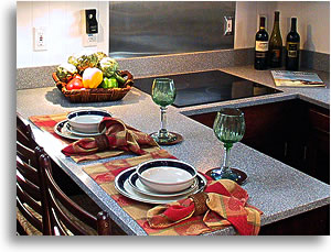 Even when set up for a meal, there’s plenty of “working” counter space remaining for the most demanding of gourmet cooks!